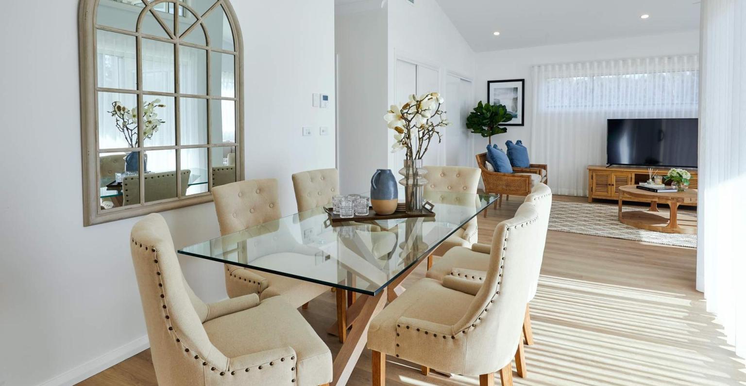 Of the 84 residential homes completed, five (5) display homes feature, including the single-storey Shelley, Blue Gum, Watonga, and Flame Tree, plus, the double-storey Lighthouse home design. Each home design features welcoming modern country styling inspired by the surrounding natural environment, raked ceilings and dormer windows to create light and spacious feelings in the modern open plan, living, dining and kitchen areas.
